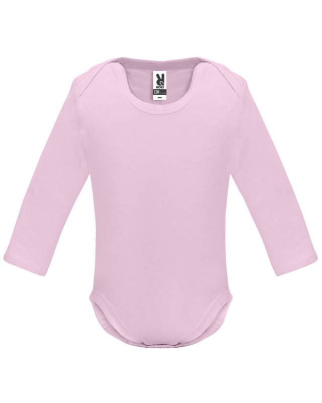 Body neonato manica lunga single jersey. Girocollo e parte inferiore rifiniti in costina 1x1. Chiusura con bottoni a pressione sull'inguine. Spalla con apertura incrociata. - Genere: Unisex - Composizione: 96% cotone pettinato / 4% elstan, 175 g/m². - *Etichetta rimovibile.