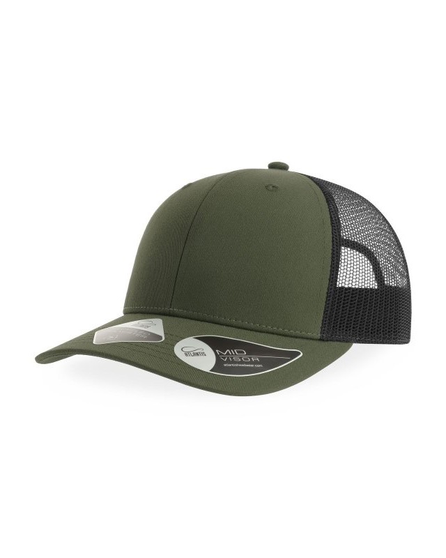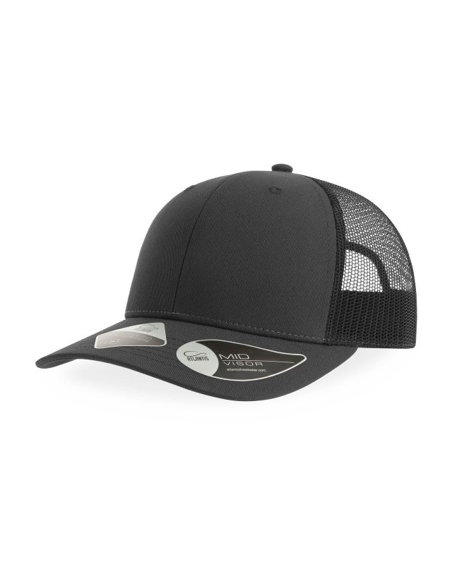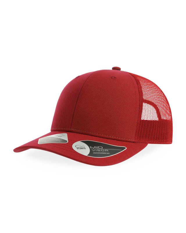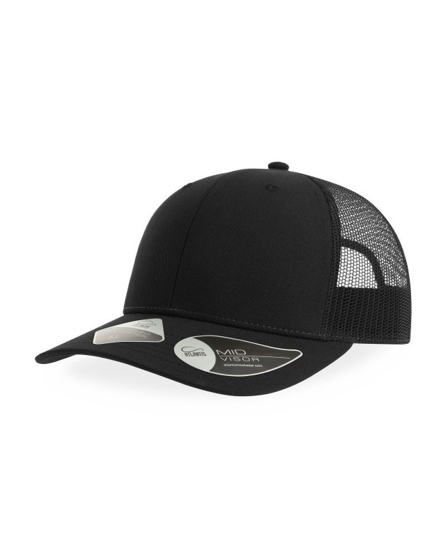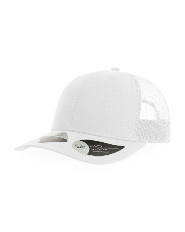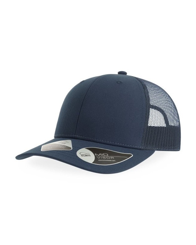 100% poliestere twill riciclato certificato. Classico cappellino trucker 6 pannelli con mesh e chiusura snapback. Ampia corona ideale per la personalizzazione. Leggero e traspirante.