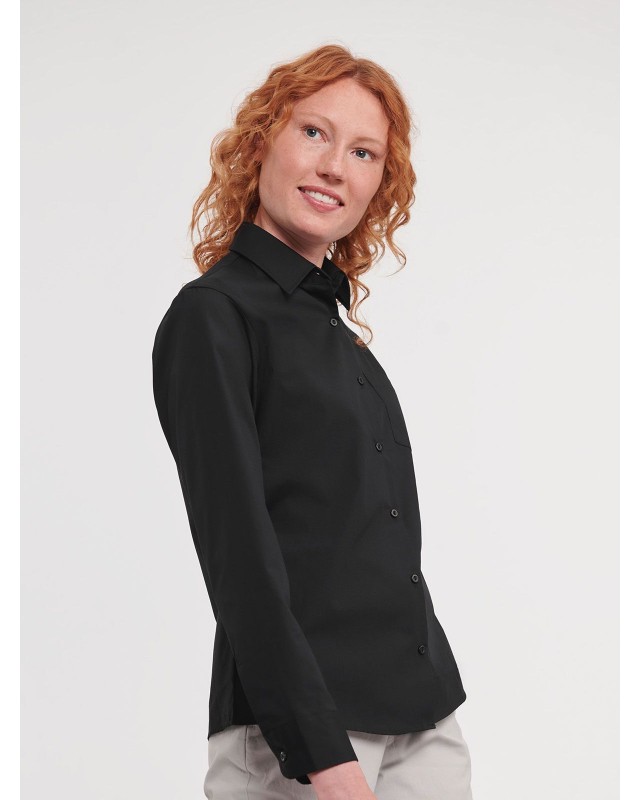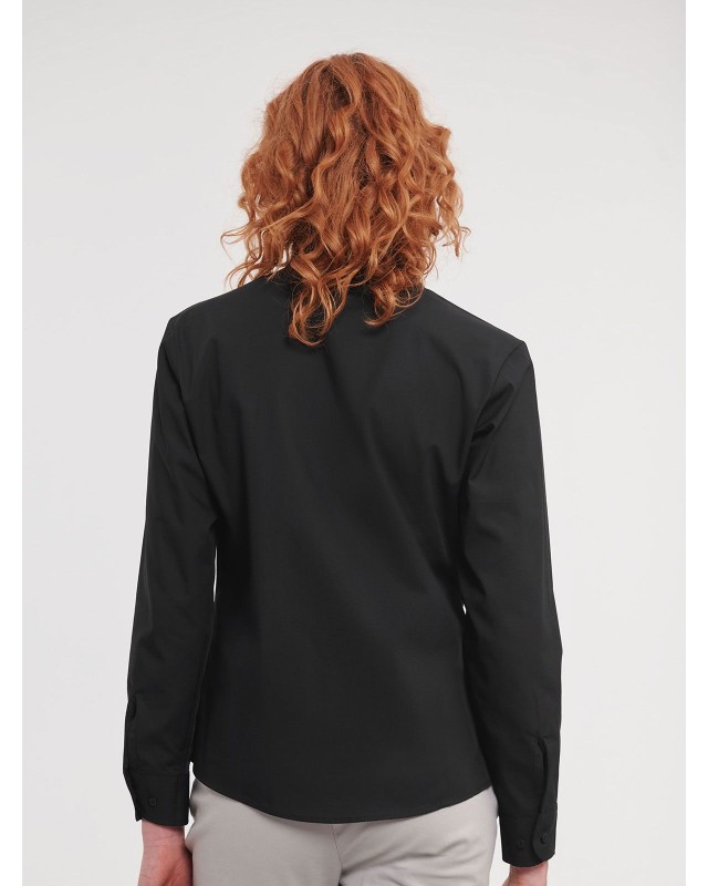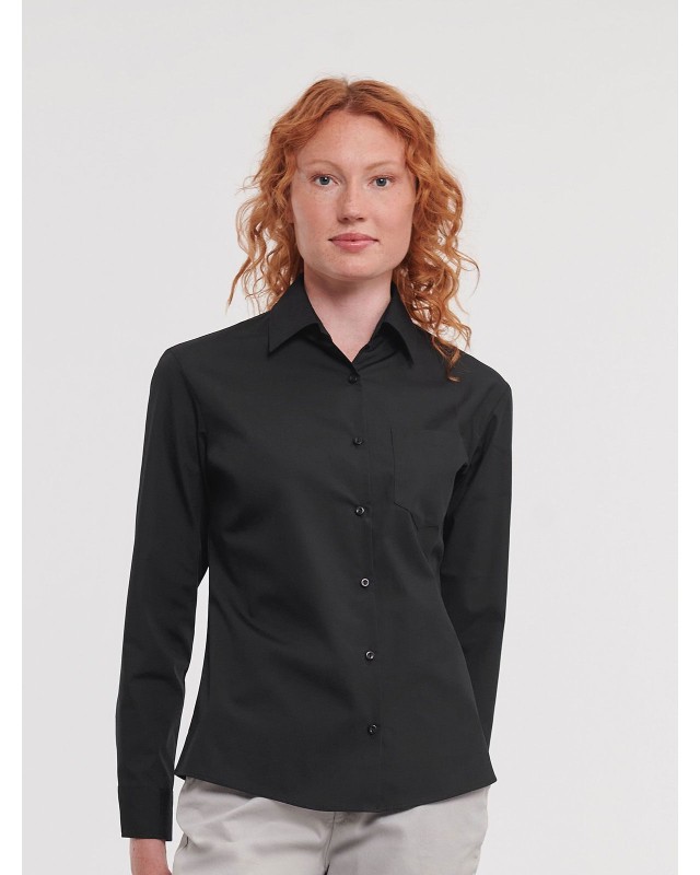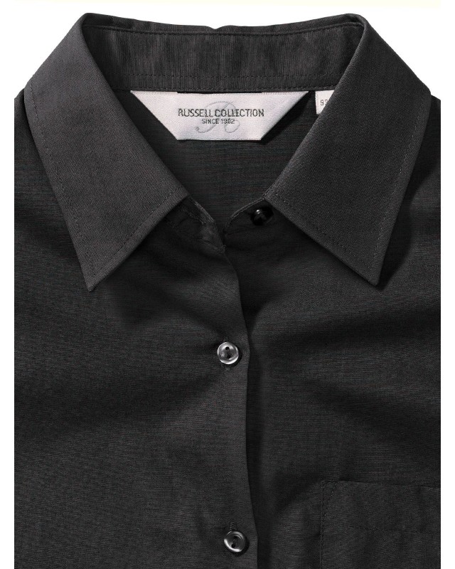 100% cotone. Camicia in popeline con colletto classico a un bottone, polsino stondato regolabile con due bottoni. Taschino a v lato cuore, Orlo stondato. (Col 30: 120g/m�).
