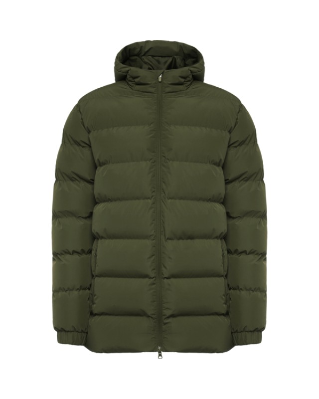 - Cappuccio rimovibile nel colletto con zip iniettata.