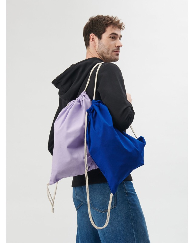 100% cotone. Gymsac con lacci di colore contrastante. Dimensioni: 40 x 50 cm.