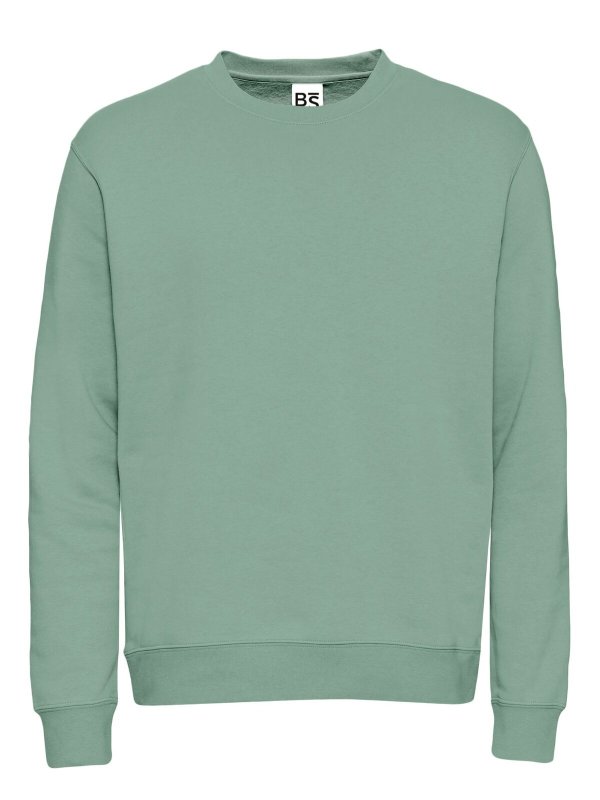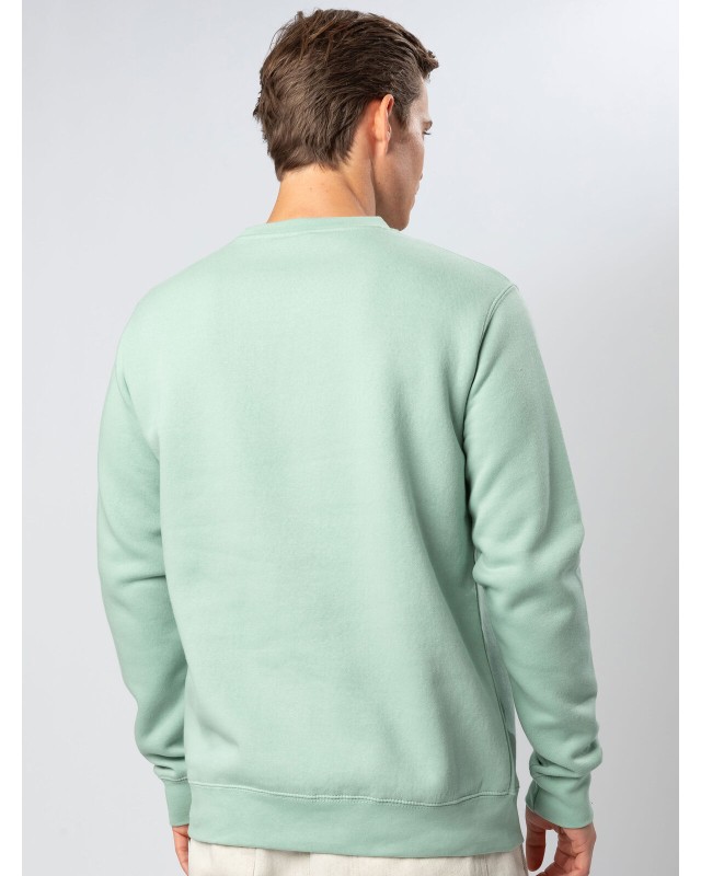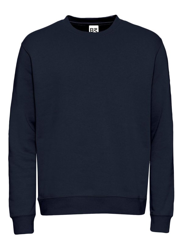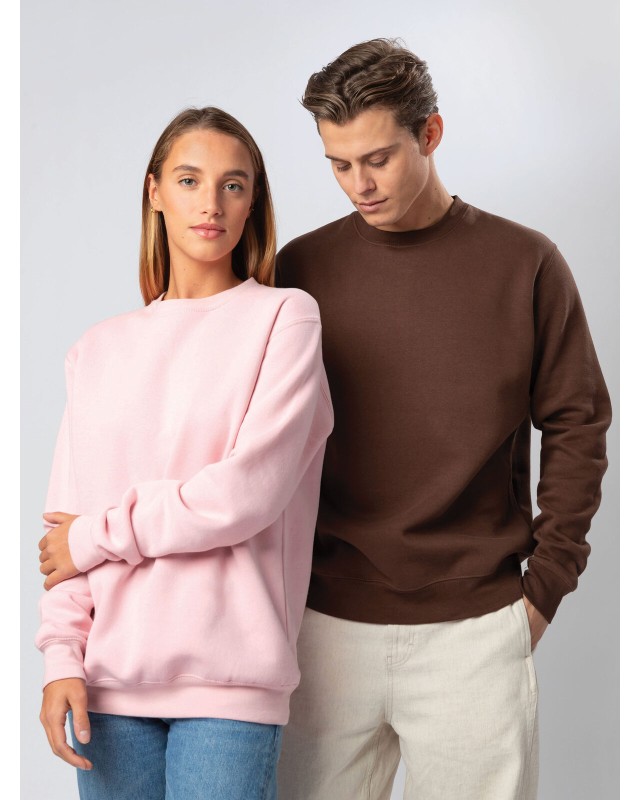 70% cotone pettinato 30% poliestere. Tessuto PST: interno in poliestere ed esterno 100% cotone. Felpa girocollo, felpata internamente. Collo, polsini e orlo inferiore in costina, rinforzo sul colletto, maniche set-in, struttura con cuciture laterali. Etichetta strappabile.