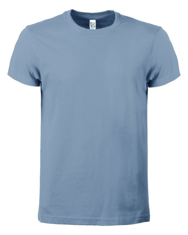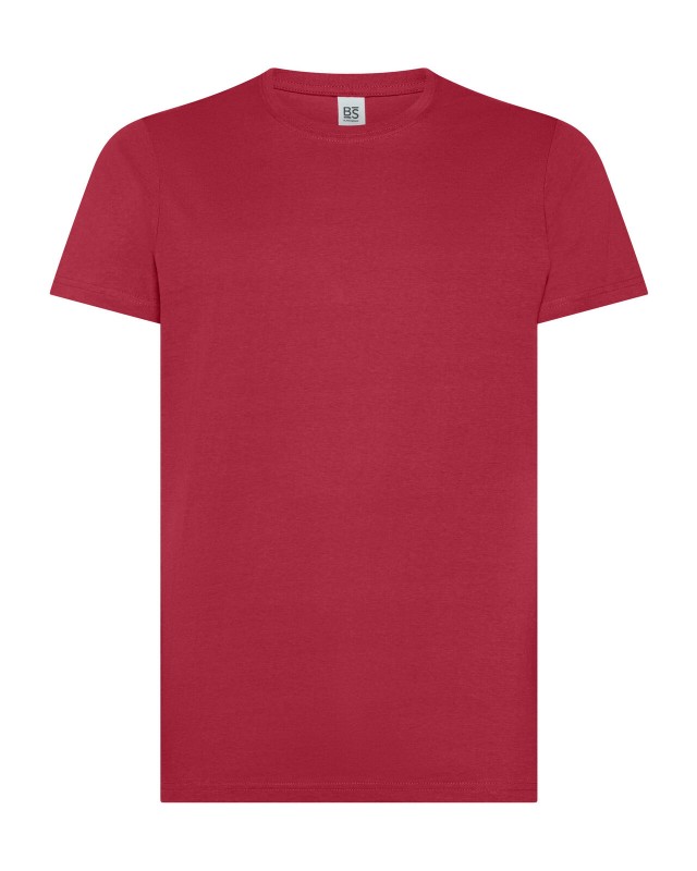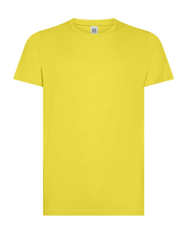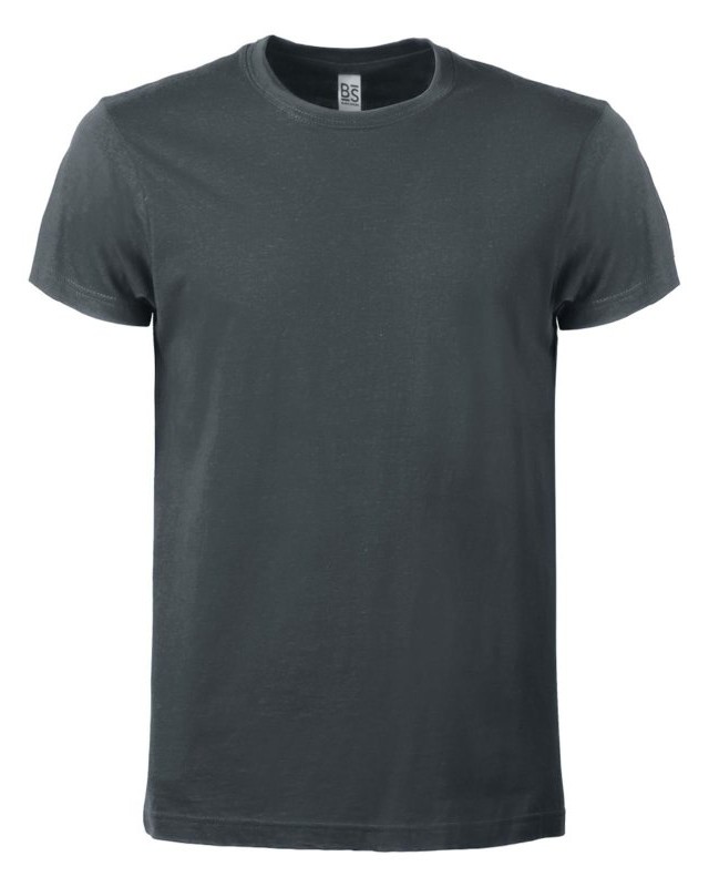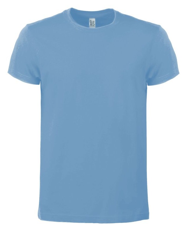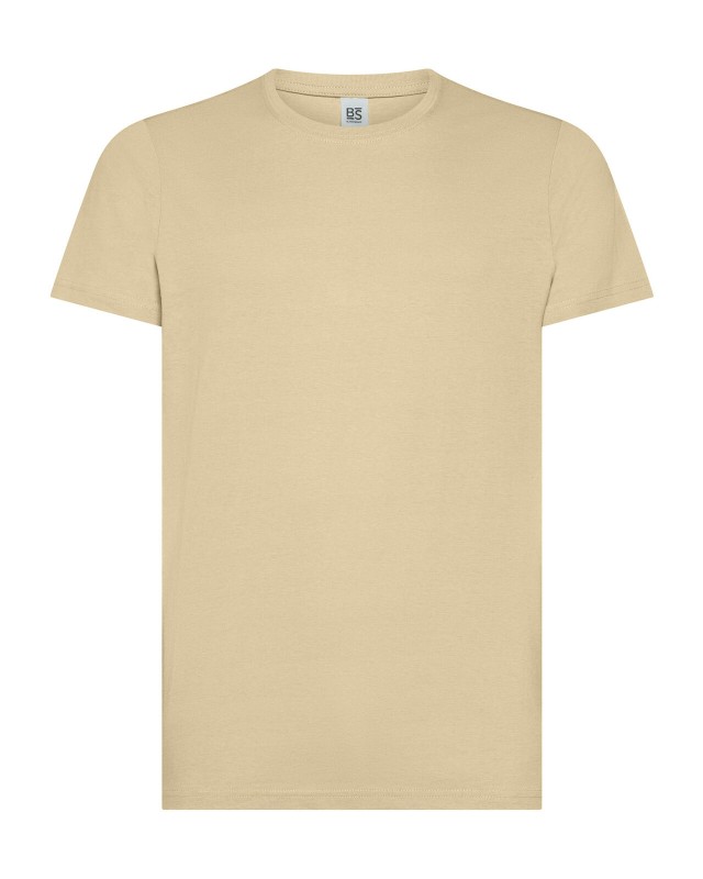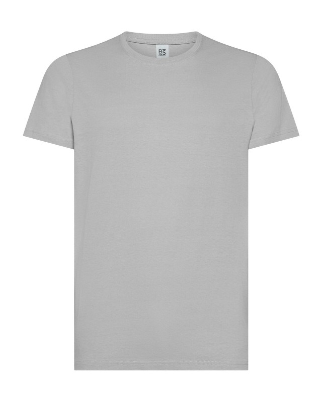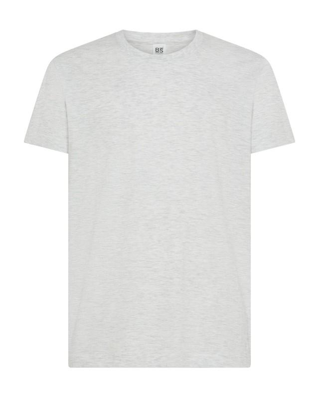 100% cotone ring-spun single jersey. T-shirt manica corta, collo basso con cucitura a doppio ago, parasudore, struttura con busto tubolare. Col GY: 85% cot. 15% visc.