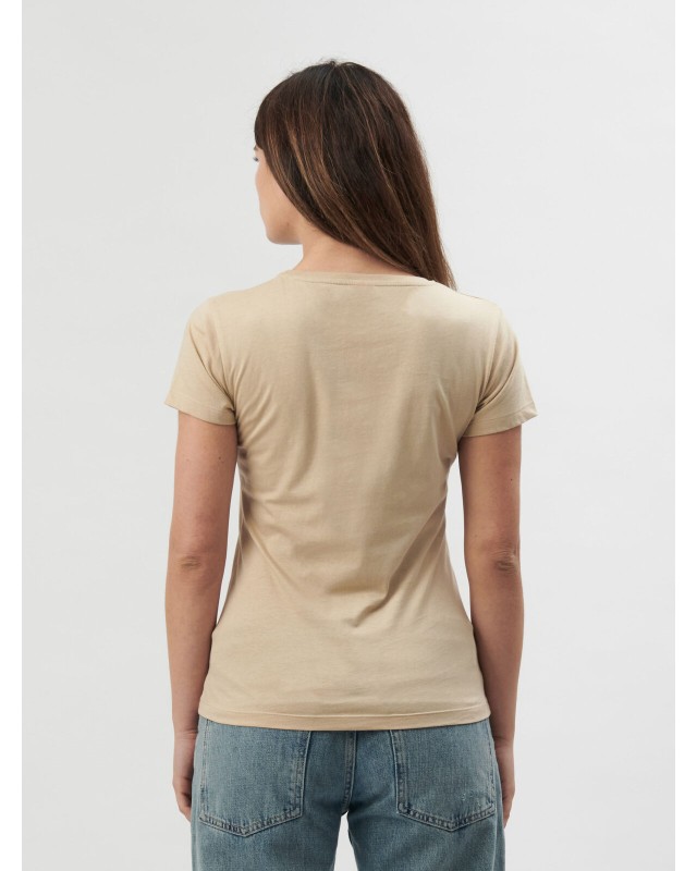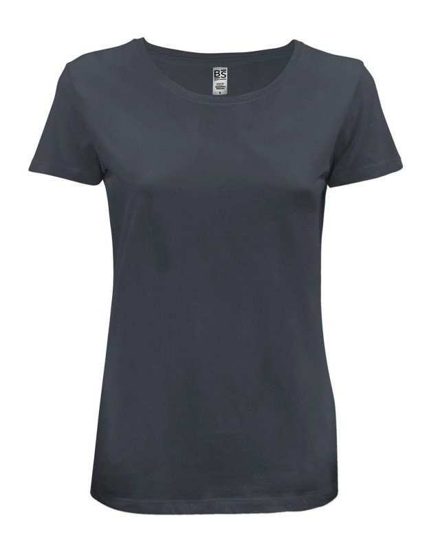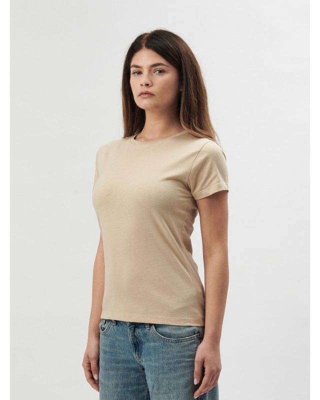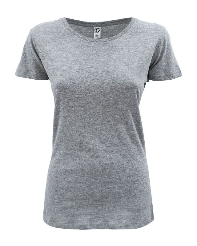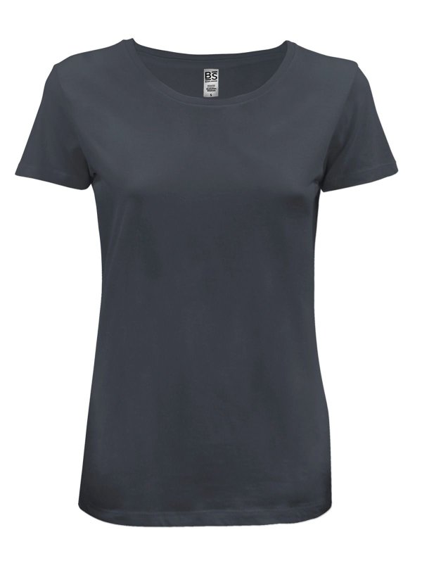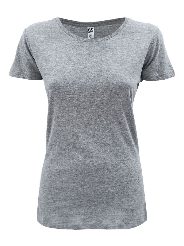 100% cotone ring-spun single jersey. T-shirt manica corta, girocollo in costina con cucitura a doppio ago, nastro di rinforzo alle spalle, struttura con cuciture laterali, leggermente sfiancata. (col. GY 85%C 15%V)