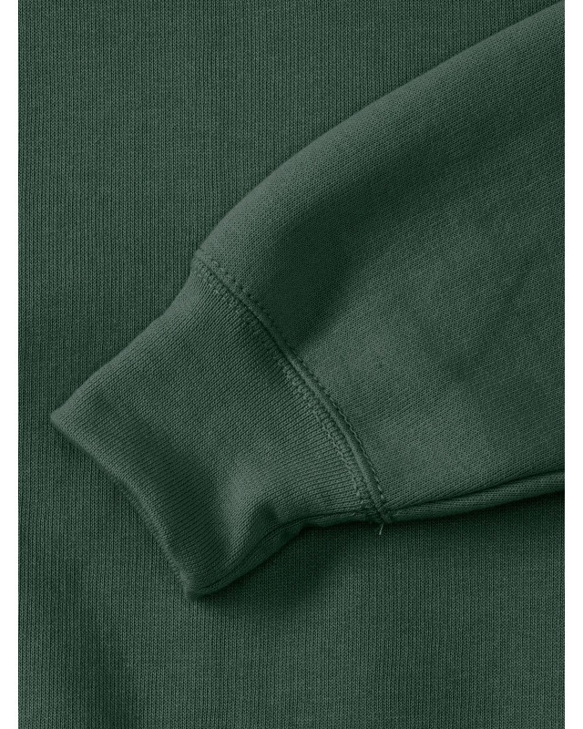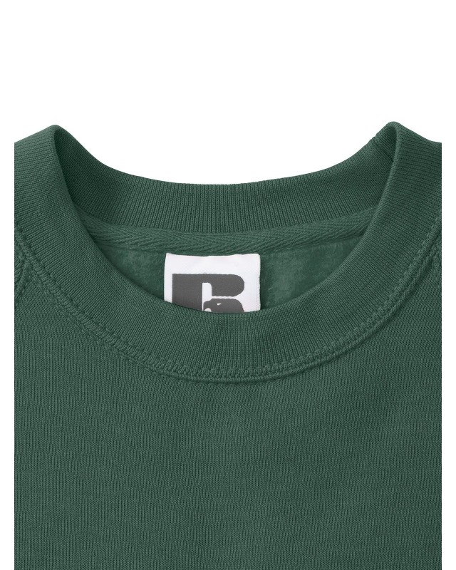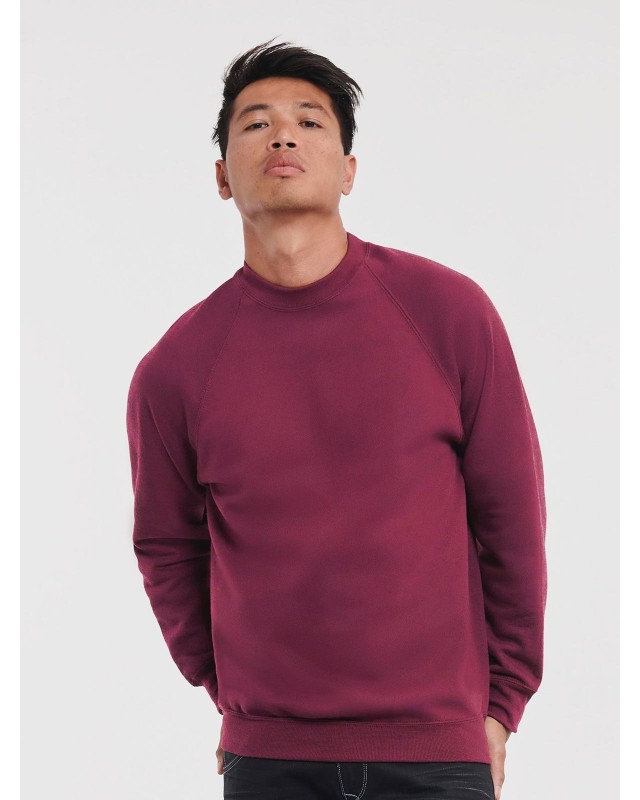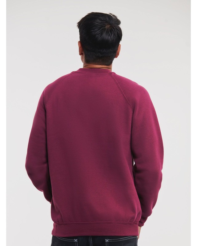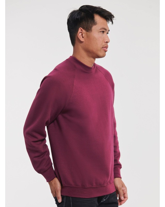 50% cotone ring-spun, 50% poliestere. Felpa con maniche raglan, felpata internamente, struttura con busto tubolare.