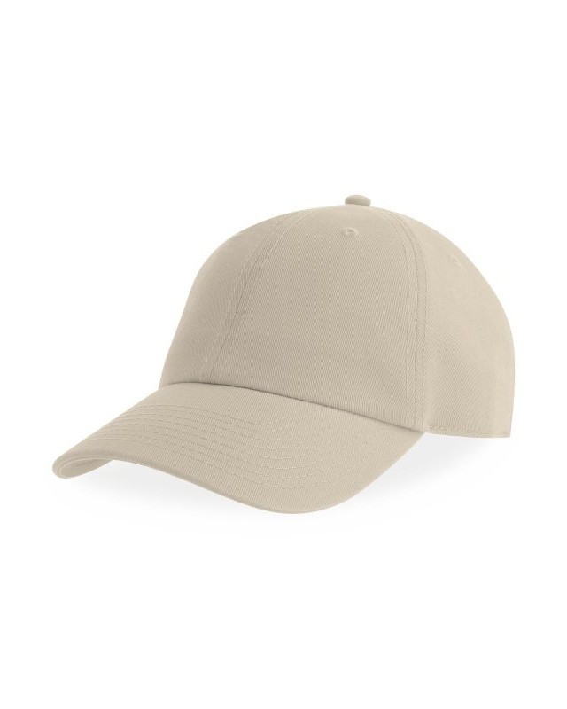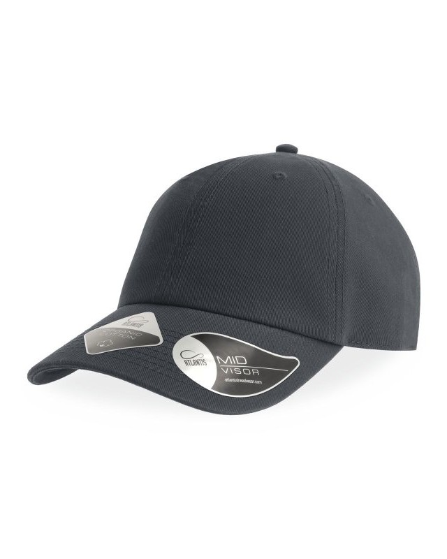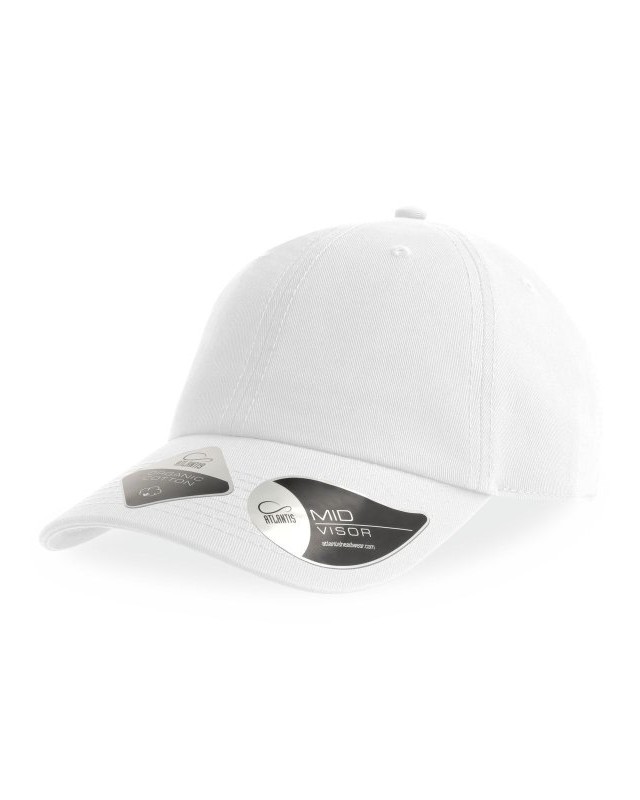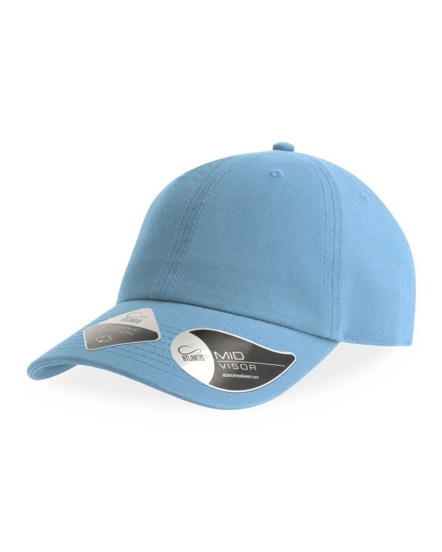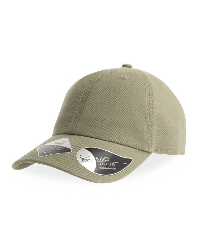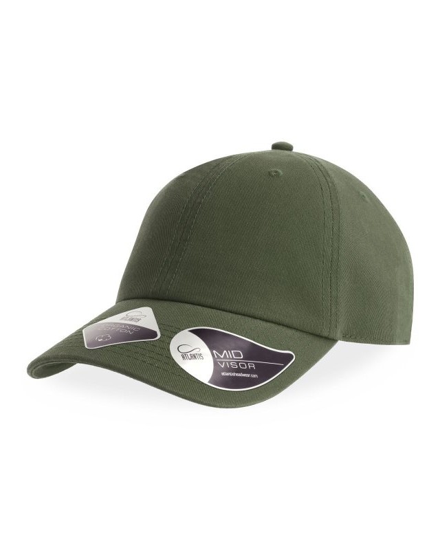 100% cotone organico certificato. Cappellino 6 pannelli destrutturato in stile dad hat con mid visor e fibbia in metallo.
