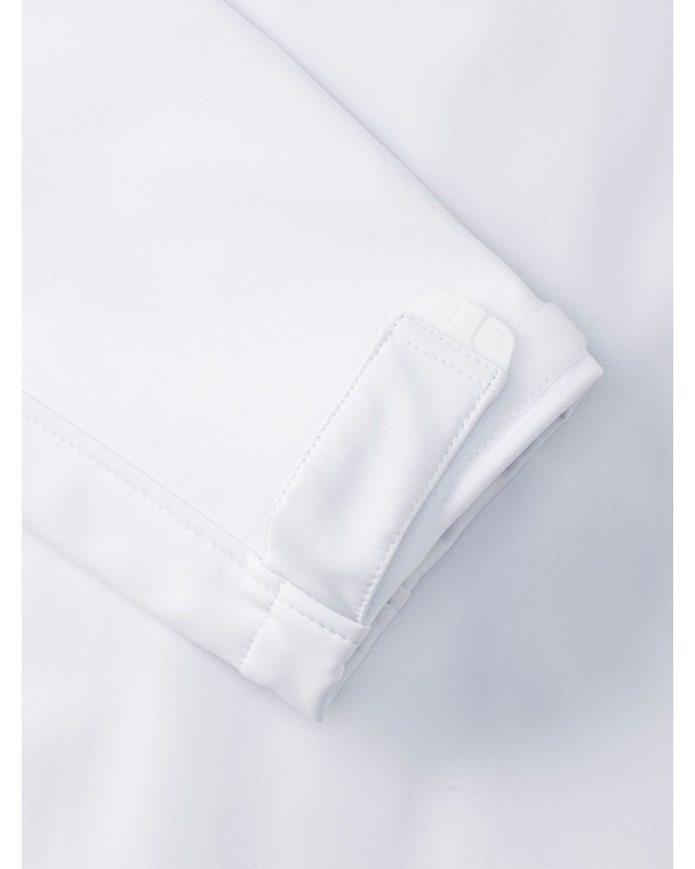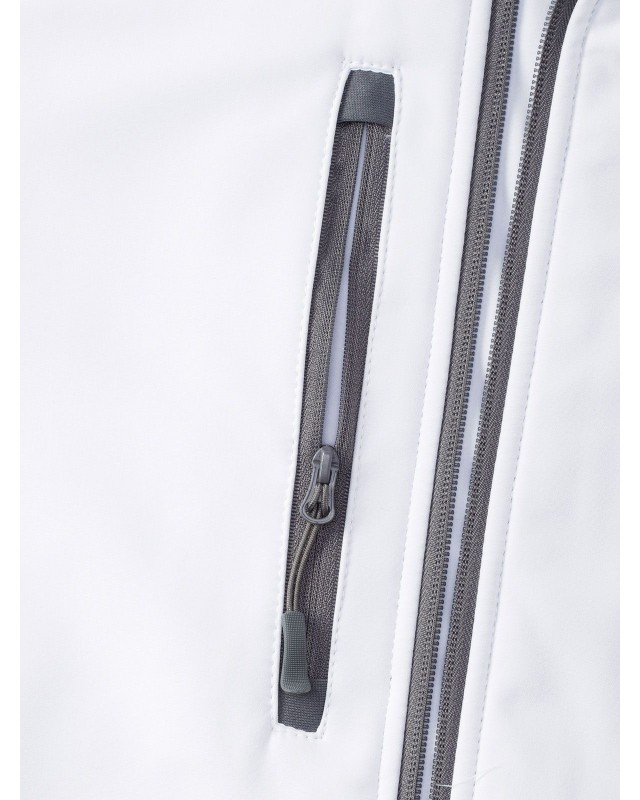 92% poliestere, 8% elastane. Giacca in softshell con tessuto a 3 strati, traspirante, resistente a vento e acqua, tasche laterali e sul torace con rivestimento, orlo con coulisse, polsini regolabili, lavabile a 40 gradiC (non usare ammorbidente), leggermente più lunga nella parte posteriore.