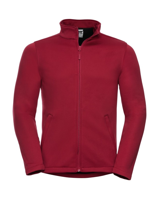 100% poliestere rivestito in DuPontTM Teflon DWR(Durable Water Resistance). Giacca in softshell . tessuto a doppio strato altamente traspirante e resistente a vento e acqua. Due tasche con zip, interno in micropile.