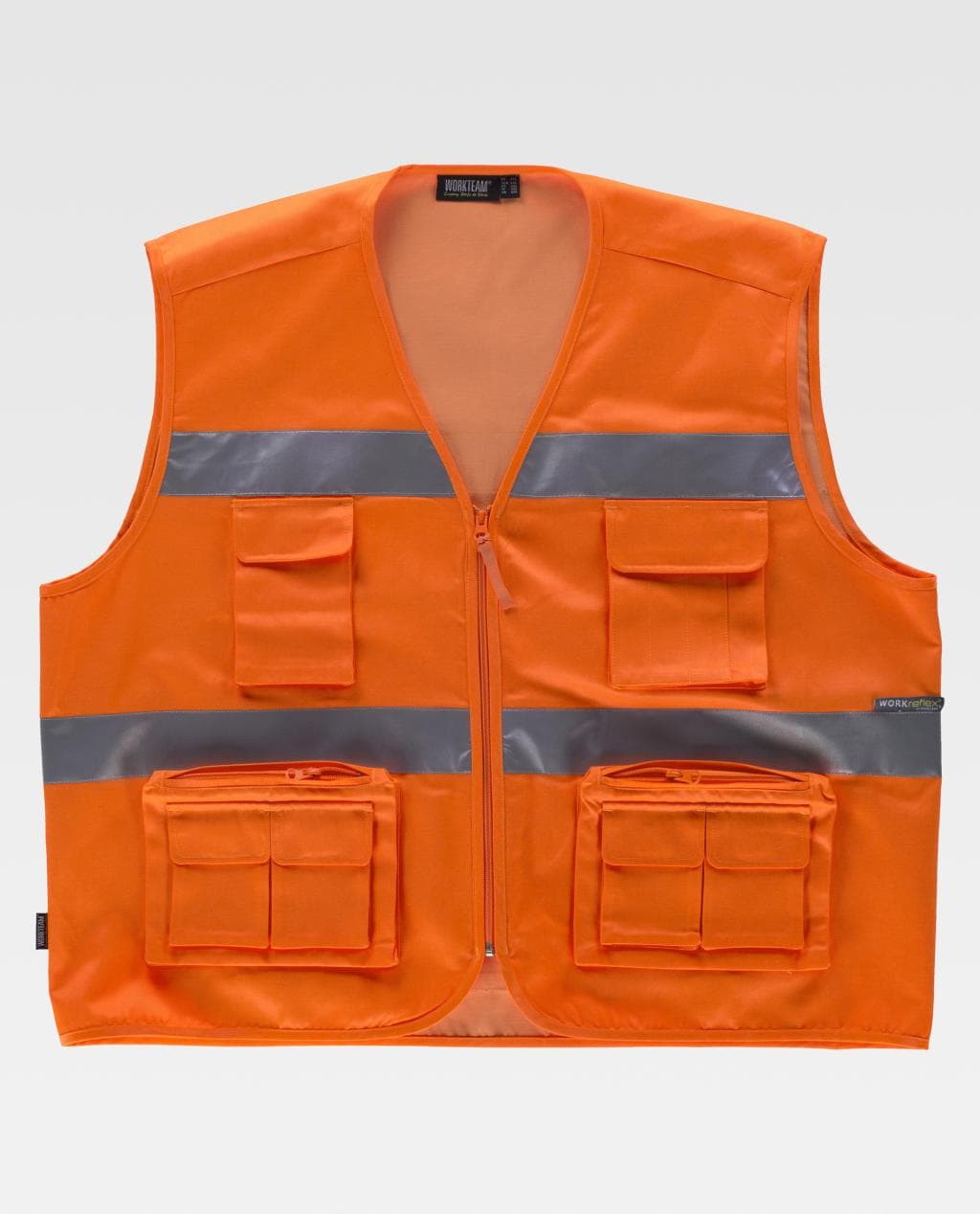 Gilet estivo multitasche alta visibilità con bande riflettenti.