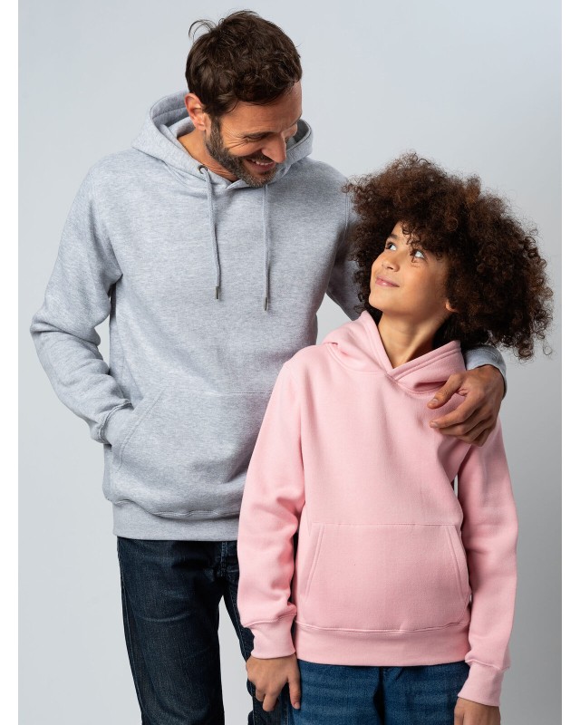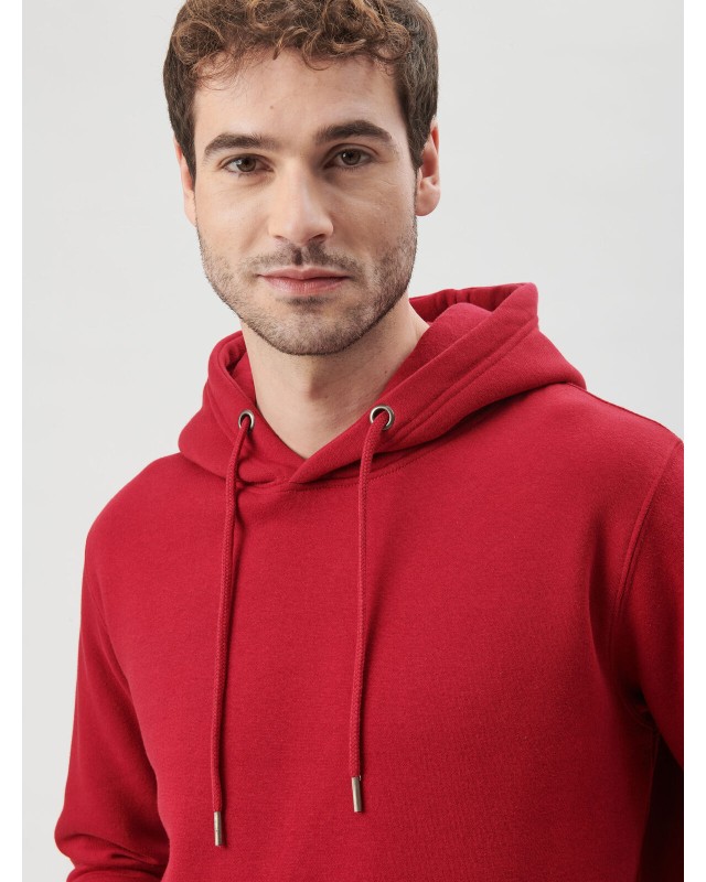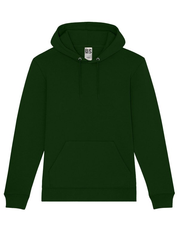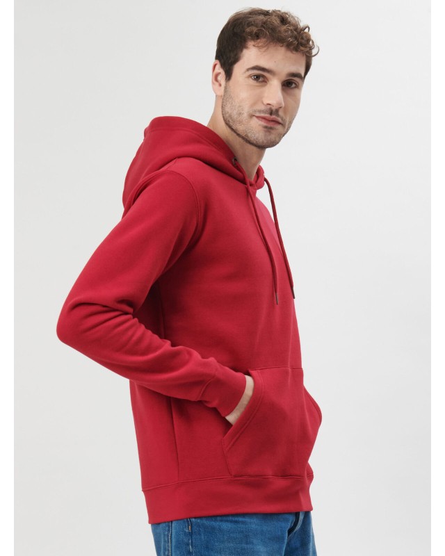 70% cotone, 30% poliestere. Tessuto PST: interno in poliestere ed esterno 100% cotone. Felpa con maniche set-in, unisex, felpata internamente, cappuccio a doppio strato, occhielli in metallo, cordini con punta in plastica, grande tasca a marsupio, struttura con cuciture laterali, fascia in vita e polsini in costina. Etichetta strappabile.
