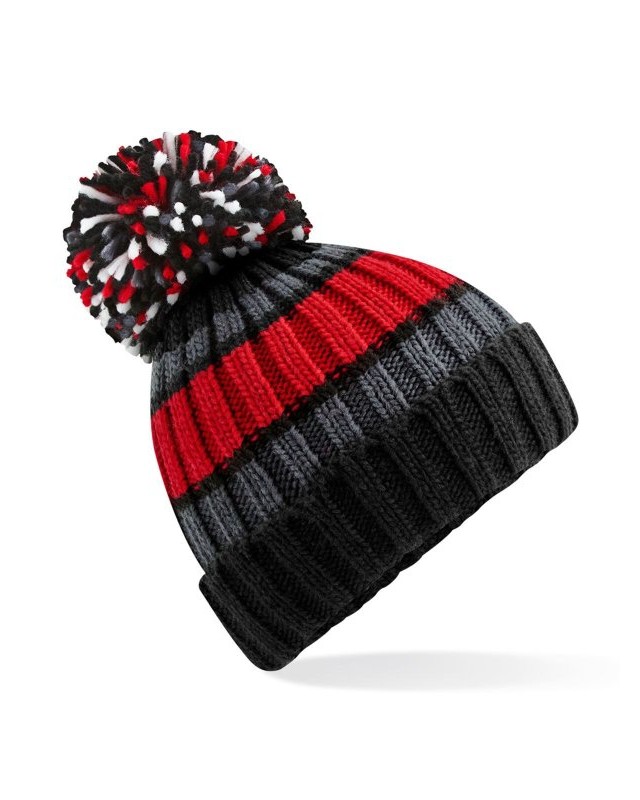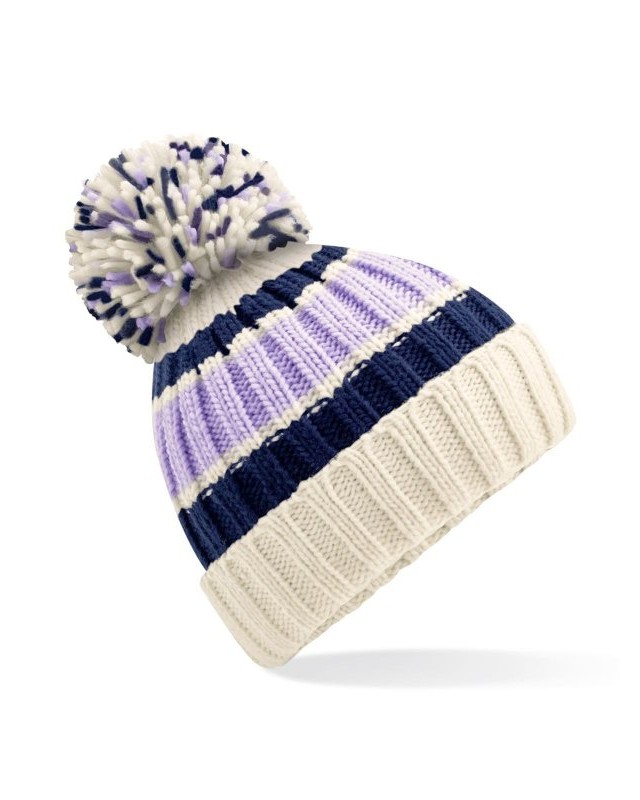 100% acrilico Soft-Spun. Fodera: 100% Finto Shearling. Cuffia a maglia pesante a coste, motivo a strisce a tre colori, elegante pompon oversize. Fodera in shearling. Con risvolto per una rifinitura ottimale. Etichetta removibile TearAway per facilitare il rebranding
