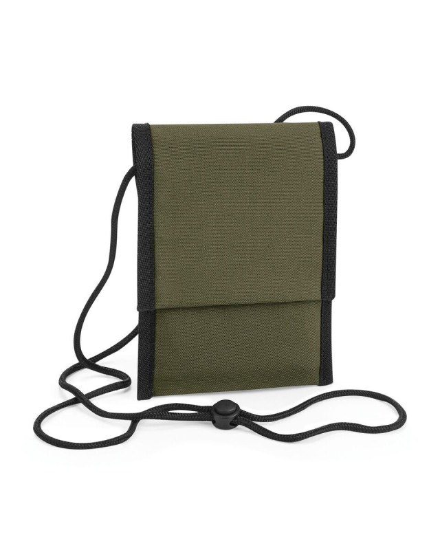 100% poliestere riciclato 600D. Borsellino porta documenti in tessuto riciclato, senza PVC, piccola tasca portavalori, chiusura Rip-Strip, laccetto regolabile, etichetta rimovibile. Dimensioni: 14x18x1, capacità: 0,5 L, area di stampa: 9x9 cm.