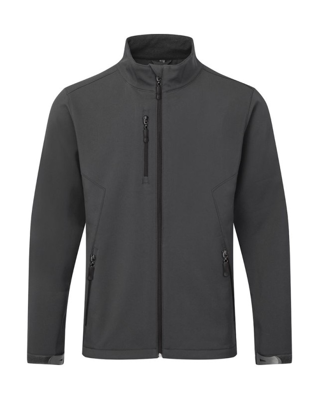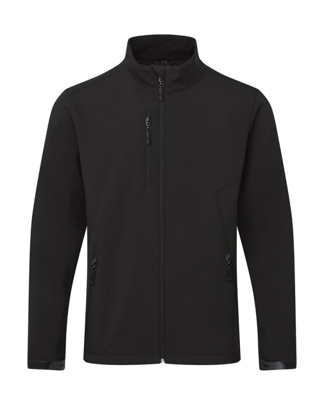 ·280 g/m² ·Außen: 96% Polyester, 4% Elasthan (3-lagiges Softshell-Gewebe) ·Mittelschicht: Hydrostatische Membran ·Innen: 100% Polyester (Antipilling Microfleece) ·Wasserdicht (3000 mm) und atmungsaktiv (1000 g/m² in 24h) ·Aufhänger im Nackenband ·Verdeckter Full Zip mit Kinnschutz ·Brusttasche und Seitentaschen mit verdecktem Zip ·Verstellbare Ärmelbündchen ·Innentaschen (1 mit Zip, 2 mit Klettverschluss) ·Verbesserte Passform und Nähte ·Verlängerter Rücken ·Verstellbarer Bund mit Kordelzug ·Leicht umzuetikettieren.