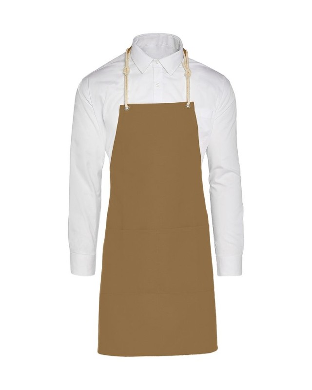 ·280 g/m² ·100% Baumwolle ·Feiner Twill-Canvas ·Modische Schürze in Natur-Optik ·Farbecht ·Reaktiv gefärbt ·Verstellbares Nackenband mit Kordeln in Farbe Natural ·Wird in der Taille mit Polycotton-Kordeln in Farbe Natural gebunden ·Große aufgesetzte Tasche mit 2 Fächern (40 x 20 cm) ·Kurze Schürze ·Maße: 80 x 70 cm ·Waschbar bis 60°C.