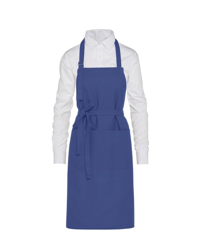 ·280 g/m² ·100% Baumwolle ·Feine Twill-Leinwand ·Farbecht ·Pflegeleicht ·Reaktiv gefärbt ·Nackenband mit Schnalle zum Einstellen ·Bänder mit Riegelnähten zum Binden in Tailenhöhe ·Große aufgesetzte Tasche mit 2 Fächern (40 x 20 cm) ·Maße: 85 x 71 cm ·Waschbar bis 60°C.