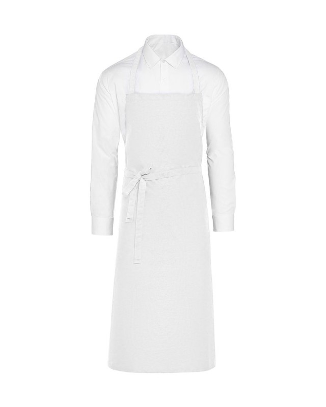 ·205 g/m² ·65% poliestere (riciclato), 35% cotone (riciclato) ·Twill fine ·Resistente al lavaggio ·Facile manutenzione ·Tintura reattiva ·Lacci in vita ·Punti di sollecitazione rinforzati ·Dimensioni: 110 x 78 cm ·Lavabile fino a 60°C.