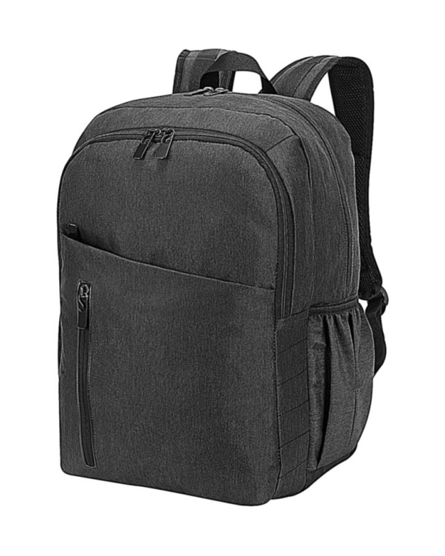 ·100% poliestere (600D mélange) ·manico di trasporto ·bretelle imbottite regolabili con strisce riflettenti ·pannello posteriore imbottito ·2 grandi scomparti principali con zip ·2 tasche frontali con zip, tasche laterali, organizzatore ·adatto per la serigrafia, il transfer o il ricamo ·Capacità: 30 Litri ·Dimensioni: 33 x 46 x 21 cm ·Max. ricamo: cerchio tubolare 6 ·Max. area di stampa: 10 x 6 cm