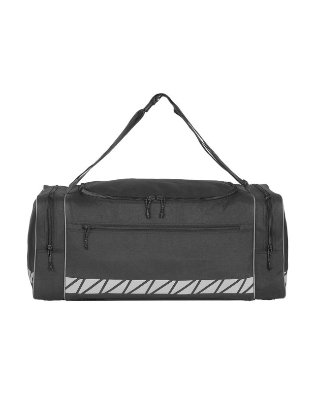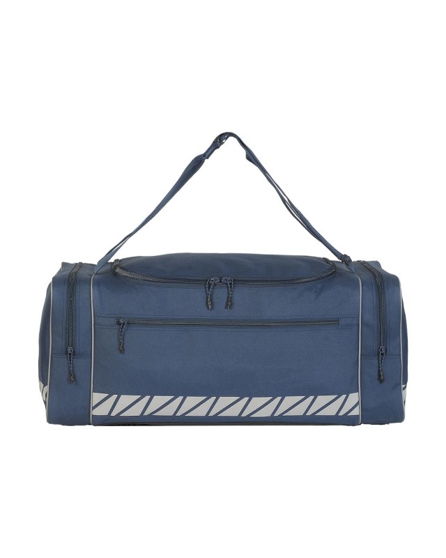 ·100% poliestere (600D) ·Pratica borsa da lavoro ·Tracolla regolabile ·Ampio scomparto principale con cerniera ·2 tasche terminali con cerniera ·Tasche anteriori con zip ·Striscia riflettente certificata Hi-Viz che circonda il fondo ·Capacità: 82 litri ·Dimensioni: 72 x 37 x 31 cm ·Adatto per serigrafia, stampa transfer o ricamo ·Massima area ricamo: telaio tubolare 10 ·Massima area di stampa: 30 x 9 cm