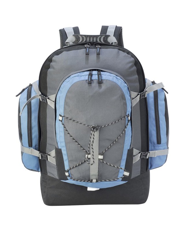 ·100% poliestere (600D/600D Rip-stop nylon) ·bretelle regolabili imbottite ·maniglia di trasporto ·parte retro imbottita ·scomparto principale con cerniera ·scomparto minore centrale con cerniera e stringhe ·2 grandi tasche laterali con cerniera ·bretelle allacciatura petto ·capacità: 45 Litri ·dimensioni 34 x 55 x 21 cm ·adatto per serigrafia, transfer e ricamo ·massima superficie ricamabile: telaio tubolare 9 ·massima superficie stampabile: 13 x 9 cm