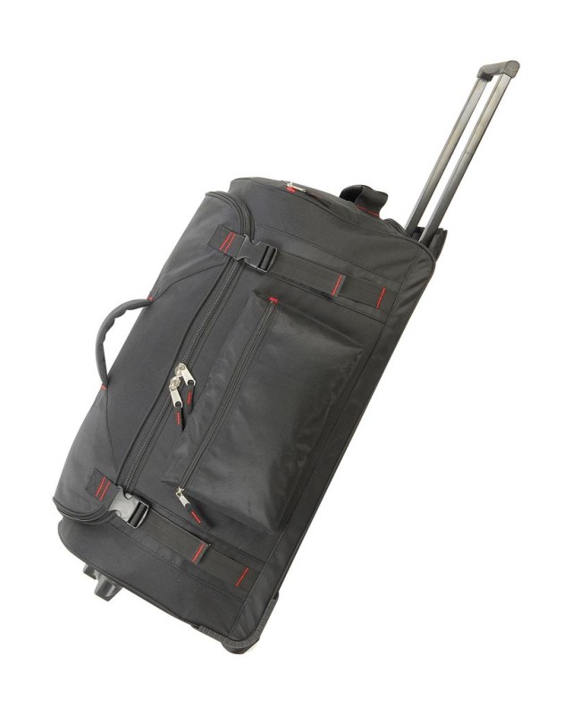 ·100% poliestere (600D/1680D) ·manico per il trasporto a mano rinforzato ·manico addizionale imbottito nella parte superiore ·capiente scomparto principale con cerniera ·capiente scomparto in mesh interno ·tasche laterali con zip ·ulteriore scomparto anteriore con cerniera ·cinghie per compressione su entrambi i lati ·capacità: 78 Litri ·dimensioni: 70 x 31 x 36 cm ·adatto per serigrafia e transfer ·massima area stampabile: 20 x 10 cm