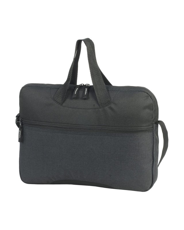 ·100% poliestere (600D Mélange/600D) ·Pratica borsa da conferenza ·Maniglie di trasporto palmate ·Tracolla palmata ·Scomparto principale imbottito per documenti o laptop ·Adatto per laptop da 15,6” ·Tasca frontale con zip ·Capacità: 3 litri ·Dimensioni: 38 x 4 x 27 cm ·Adatto per transfer, serigrafia o ricamo ·Max. ricamo: telaio tubolare 6 ·Max. area di stampa: 20 x 8 cm.