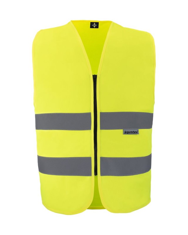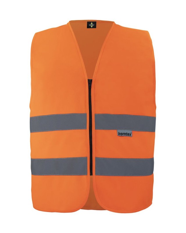 ·100% poliestere ·Cerniera intera sul davanti ·Strisce orizzontali riflettenti (larghezza 5 cm) davanti e dietro ·EN ISO 20471:2013/A1:2016 ·Il produttore garantisce proprietà riflettenti secondo la norma EN per 5 cicli di lavaggio a 40°C ·Confezionato singolarmente in sacchetto di plastica