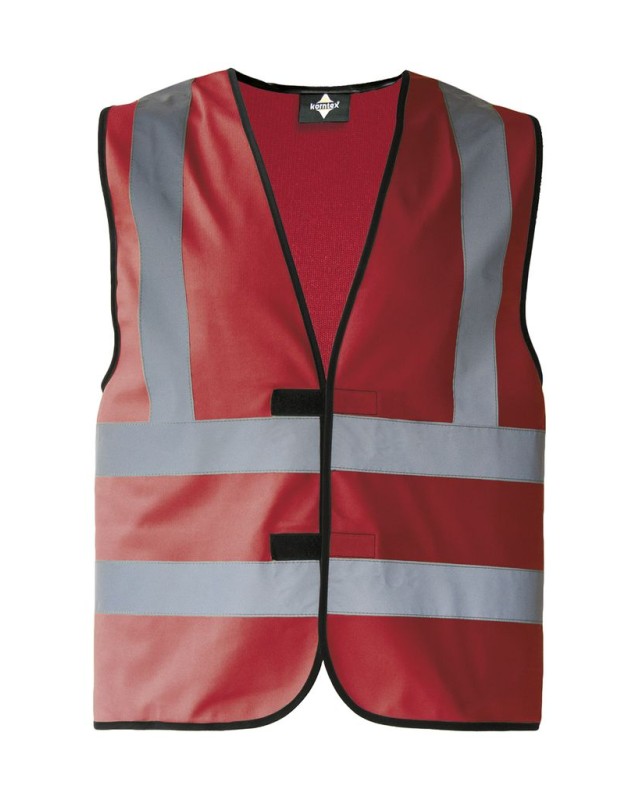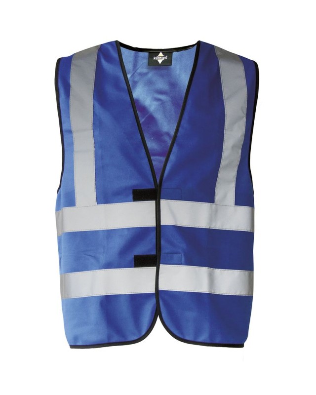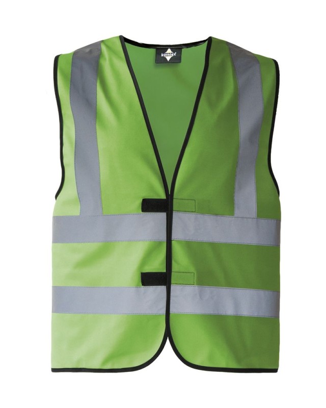 ·100% poliestere ·Bordi rilegati neri ·Chiusura a strappo ·Strisce riflettenti verticali e orizzontali (larghezza 5 cm) davanti e dietro ·Il produttore garantisce proprietà riflettenti secondo la norma EN per 25 cicli di lavaggio a 40°C ·Confezionato singolarmente in sacchetto di plastica
