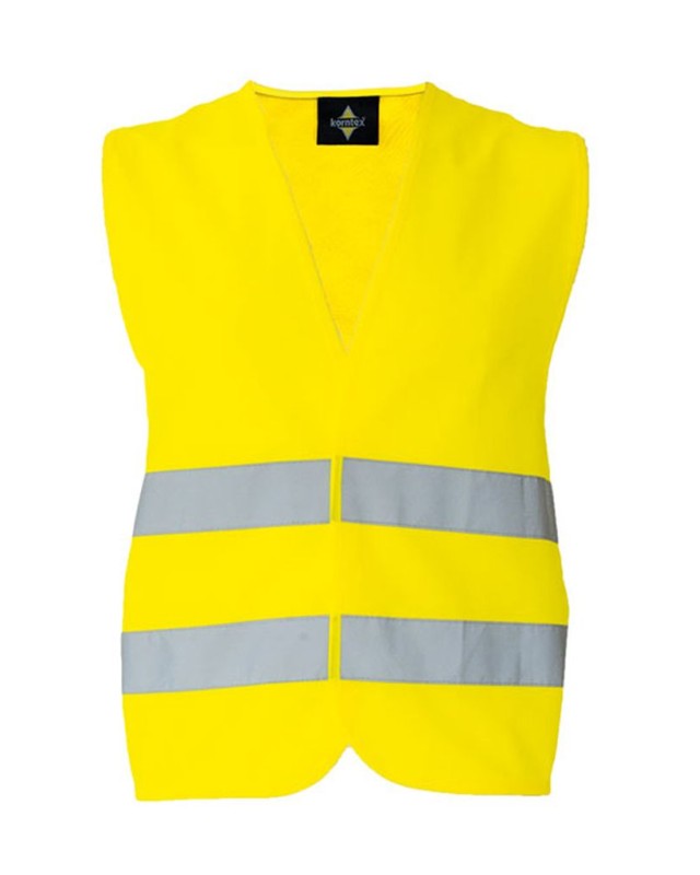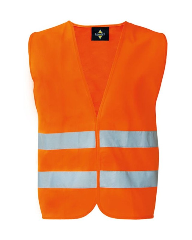 ·100% poliestere ·Chiusura a strappo ·Strisce orizzontali riflettenti (larghezza 5 cm) davanti e dietro ·EN ISO 20471:2013/A1:2016 ·Il produttore garantisce proprietà riflettenti secondo la norma EN per 5 lavaggi a 40°C