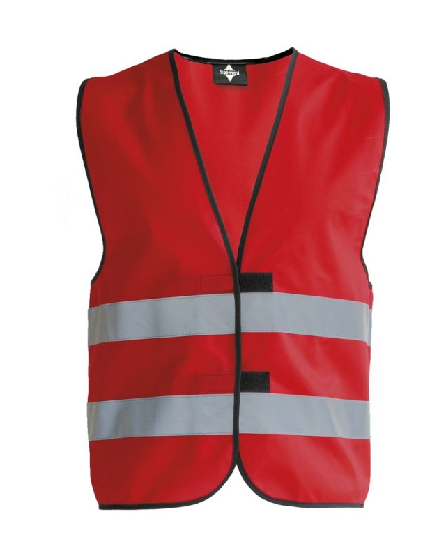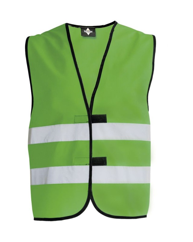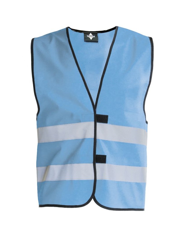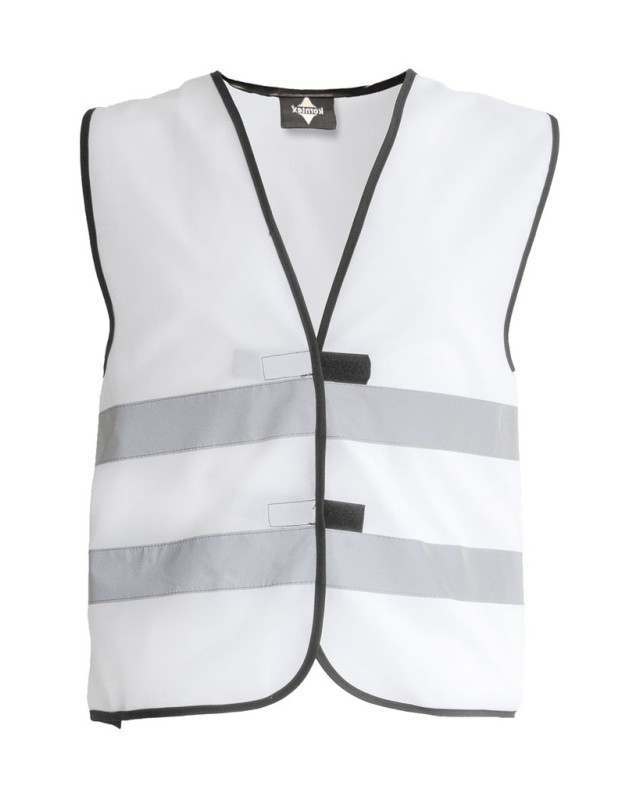 ·100% poliestere ·Bordi rilegati neri ·Chiusura a strappo ·Strisce orizzontali riflettenti (larghezza 5 cm) davanti e dietro ·EN 17353:2020 Tipo B3 ·Confezionato singolarmente in sacchetto di plastica