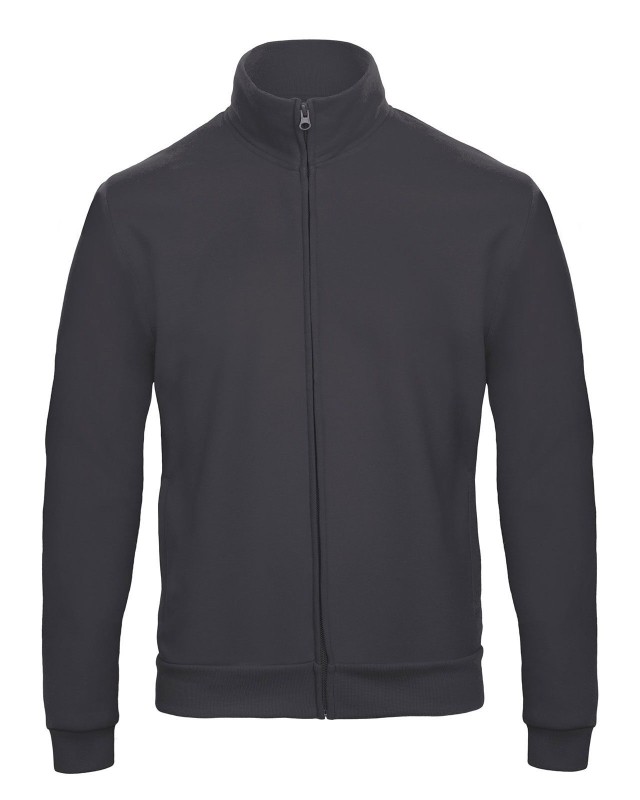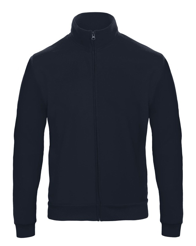 50% cotone, 50% poliestere. Felpa con maniche set-in, 2 tasche frontali, zip intera in metallo, polsini e orlo inferiore in costina 1x1 in elastane, struttura con cuciture laterali, cuciture rinforzarte su braccia e collo per una maggiore resistenza. Felpata internamente, nessuna etichetta.