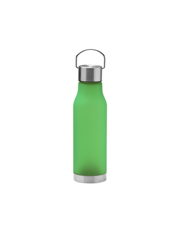 Bottiglia in RPET con finitura traslucida smerigliata e tappo, manico e fondo in acciaio inox. Capacità 600 ml. Confezione in scatola di design ecologico. - Misure: [23,5cm/6,8Ø] - Composizione: RPET - Presentation in eco design box.