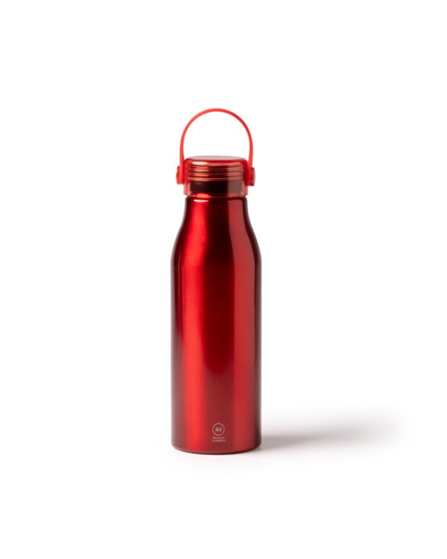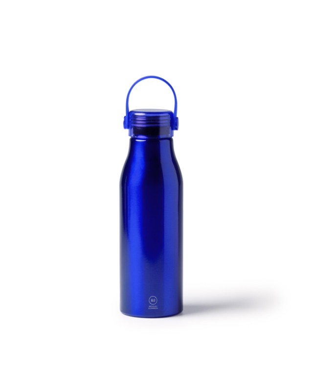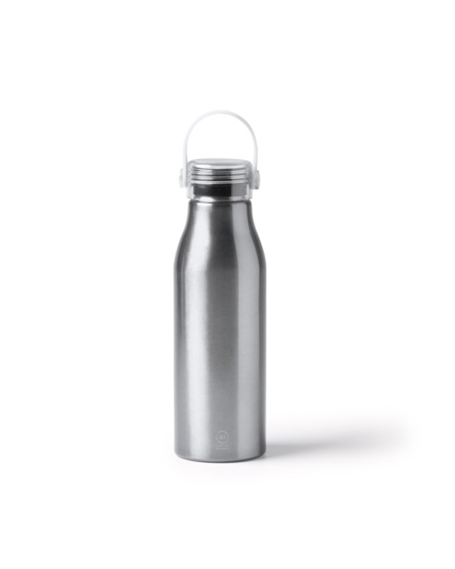 Bottiglia in alluminio riciclato con tappo trasparente e manico in silicone coordinato. Capacità 750 ml. Confezione in scatola di design ecologico. - Misure: [23cm/7,3Ø] - Composizione: Aluminio reciclado - Presentación en caja diseño eco.