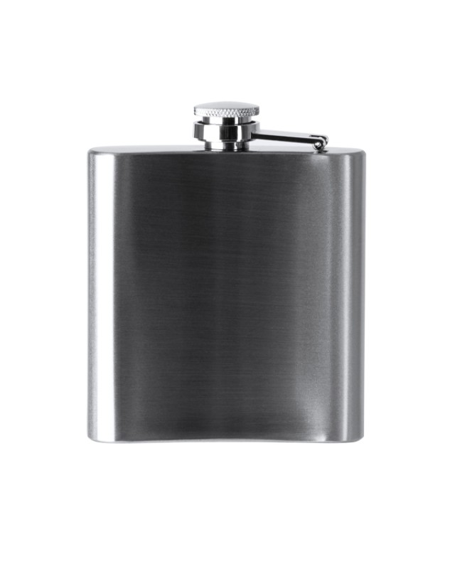 Fiaschetta in acciaio inox con chiusura di sicurezza antigocciolamento. Capacità 175 ml. - Misure: [9,3cm/11,2cm/2,1cm] - Composizione: Acero inoxidable - Confezione in scatola di design.