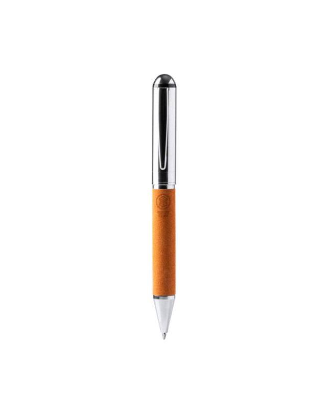 Penna a sfera con meccanismo a rotazione e struttura principale in metallo e pelle riciclata. Inchiostro blu. Confezione in scatola ecologica. - Misure: [14,1cm/1,2Ø] - Composizione: Metal y piel reciclada. - Presentación en caja eco.