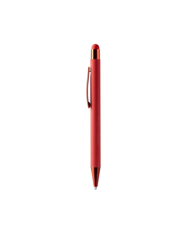 Penna a sfera a pressione con struttura metallica soft-touch. Specifica per la stampa laser. Puntatore a sfioramento. Ricarica jumbo a inchiostro blu. - Misure: [14cm/1,3Ø]