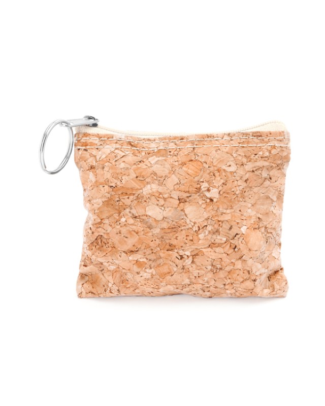 Portamonete in sughero naturale con anello argentato sul tirazip. - Misure: [11cm/9cm] - Composizione: Sughero