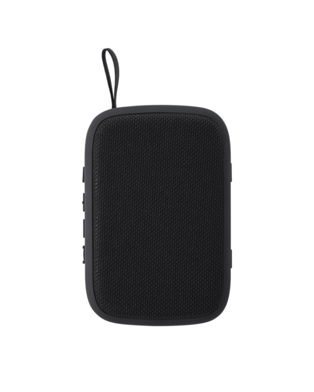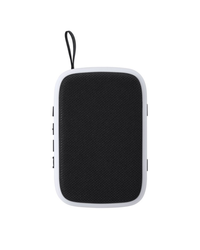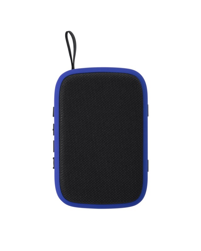 Cassa wireless bicolore con Bluetooth. Corpo con finitura touch in gomma opaca. Il modello include un anello per il trasporto, bottoni e tessuto coordinato. Ha una potenza di 3W e batteria ricaricabile. Cavo incluso. - Misure: [11,1cm/8,3cm/4,1cm] - Versione Bluetooth: 3.0 + EDRTensione di ricarica: DC 5VBatteria al litio ricaricabile.Distanza di funzionamento: fino a 10 metri Frequenza: 280Hz – 16KHz.Sensibilità: 95db ± 2db.Uscita: 4Ω, 3W.Cavo di ricarica USB e jack inclusiManuale di istruzioni disponibile in 6 lingue: spagnolo, inglese, francese, italiano, tedesco e portoghese.Confezione in scatola di design.