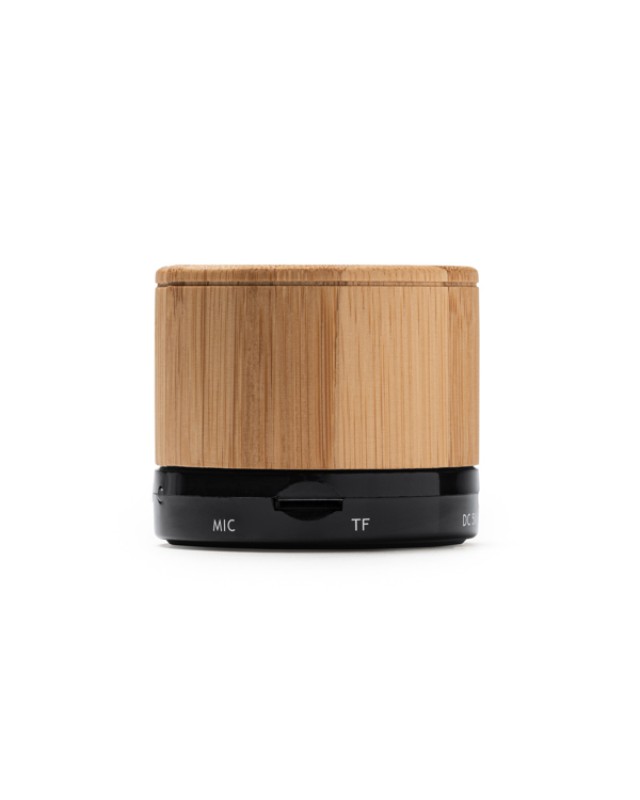 Cassa wireless Bluetooth con corpo in bambù. Realizzata con funzione radio FM, vivavoce, slot per schede micro SD. Questa cassa ha una potenza di 3W e una batteria ricaricabile. Include il cavo e viene fornita in una scatola di design ecologico. - Misure: [5,1cm/6Ø] - Composizione: Bambú Naturale - Versione del Bluetooth 2.1 + EDRTensione di ricarica: DC 5V.Batteria al litio ricaricabile.Distanza di funzionamento: fino a 10 metri. Frequenza: 280Hz – 16KHz.Sensibilità: 95db ± 2db.Uscita: 4Ω, 3W.Cavo audio da 3,5 mm incluso, con connessione USB e micro USB.Manuale di istruzioni disponibile in 4 lingue: spagnolo, inglese, francese e italiano. Confezione in scatola di design ecologico.