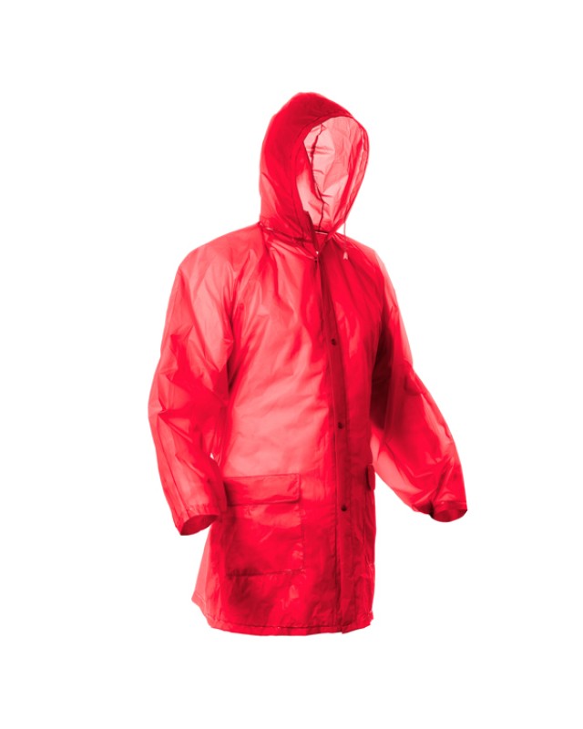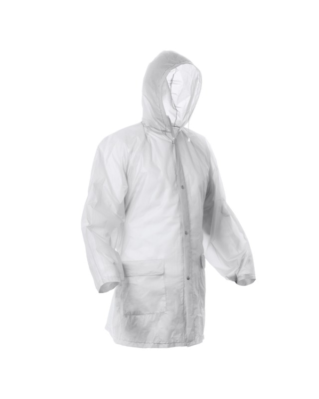 Impermeabile con finiture termosaldate, chiusura centrale con 4 bottoni a pressione, tasche laterali con linguetta, polsini con bottone, 3 spacchetti posteriori e cappuccio regolabile con coulisse. - Misure: [86cm/72cm] - Composizione: EVA e poliestere. - Talla unica adultoCustodia inclusa.