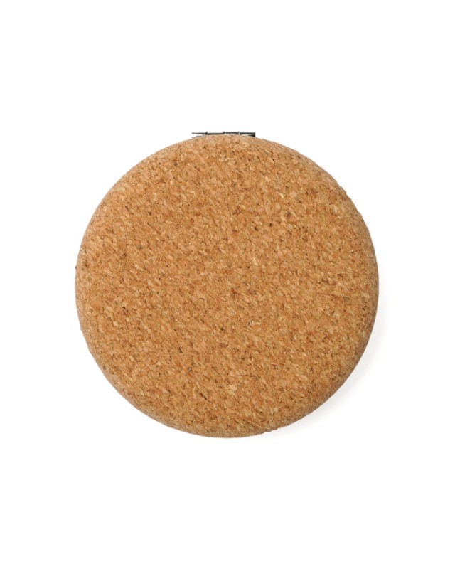 Specchio tascabile pieghevole realizzato in sughero naturale e metallo cromato, composto da due specchi, uno normale e l'altro tipo lente d'ingrandimento. - Misure: [2cm/6,1Ø] - Composizione: Sughero naturale. - Confezione in scatola di eco design.