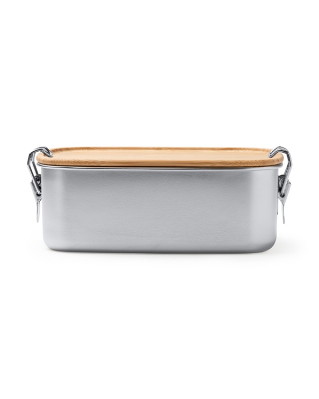 Contenitore per il pranzo in acciaio inox 304 con coperchio in bambù. Sistema di chiusura con fibbie laterali. Ampia capacità di 1 litro per conservare gli alimenti. Contenitore per il pranzo personalizzabile. - Misure: [19,4cm/6,8cm/13,1cm] - Composizione: Acciaio inossidabile 304 - Confezione in scatola dal design ecologico.Capacità di 1 litro