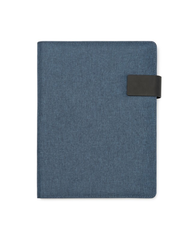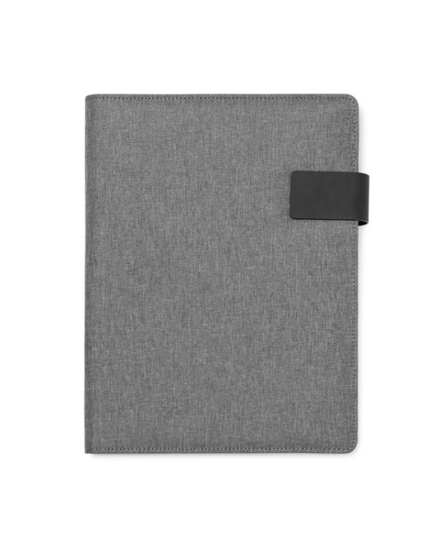 Cartellina multiuso A4 in RPET 600D mélange con chiusura a calamita. Blocchetto da 30 fogli a righe rimovibile incluso. 4 tasche interne e portapenne. - Misure: [24,5cm/31cm/1,5cm] - Composizione: RPET