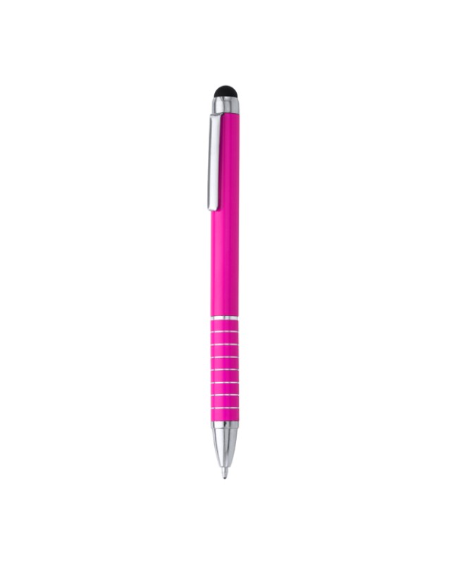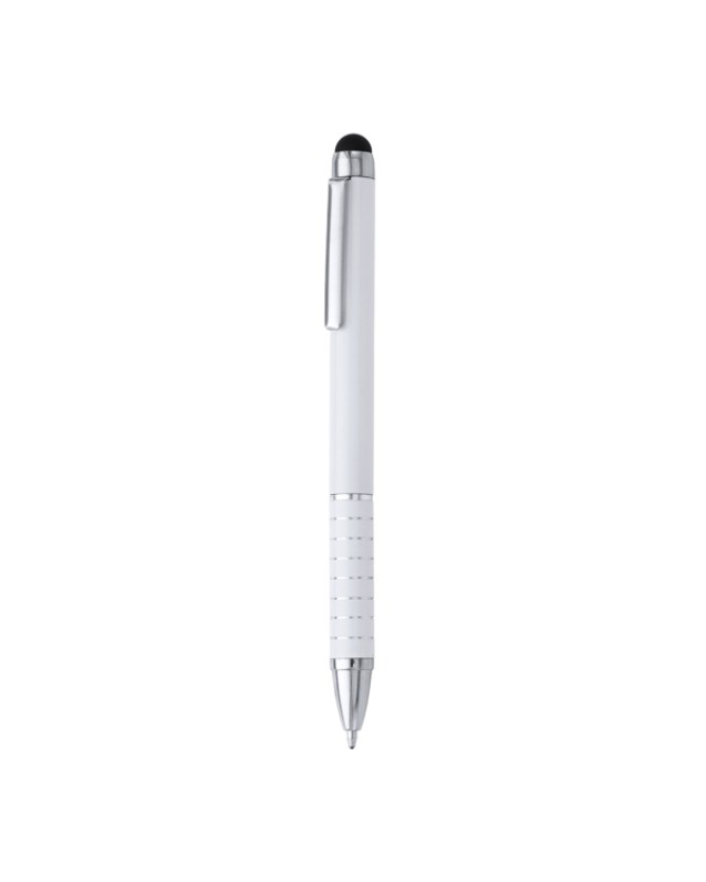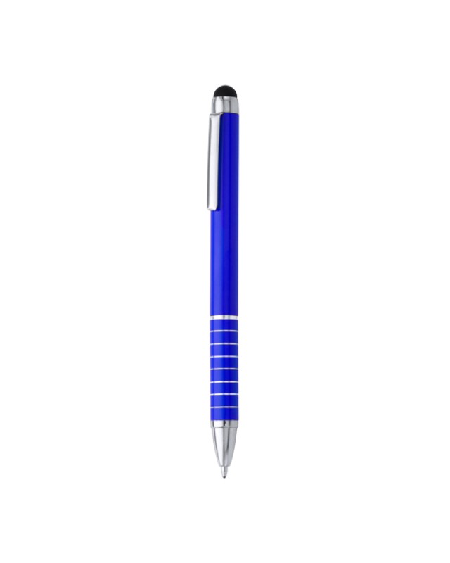 Penna a sfera con meccanismo a torsione in alluminio con pennino touchscreen in silicone. Inchiostro blu. - Misure: [12,5cm/0,9Ø] - Composizione: Alluminio
