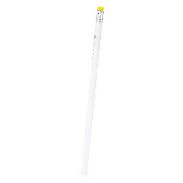 Matita antibatterica bianca in legno con gomma, disponibile in vari colori. Logo antibatterico stampato sulla parte superiore della matita. - Misure: [18,6cm/0,7Ø] - Composizione: Legno con uno strato di vernice antibatterica.
