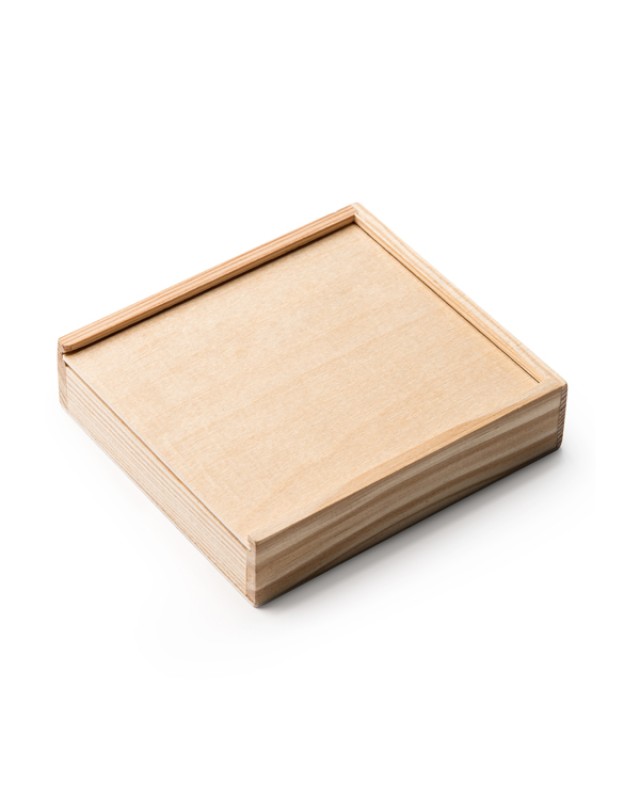Set di 2 giochi da tavolo: mazzo di carte francesi e dadi. - Misure: [10cm/2,5cm/9,1cm] - Presentato in una scatola di legno con due scomparti e coperchio scorrevole.
