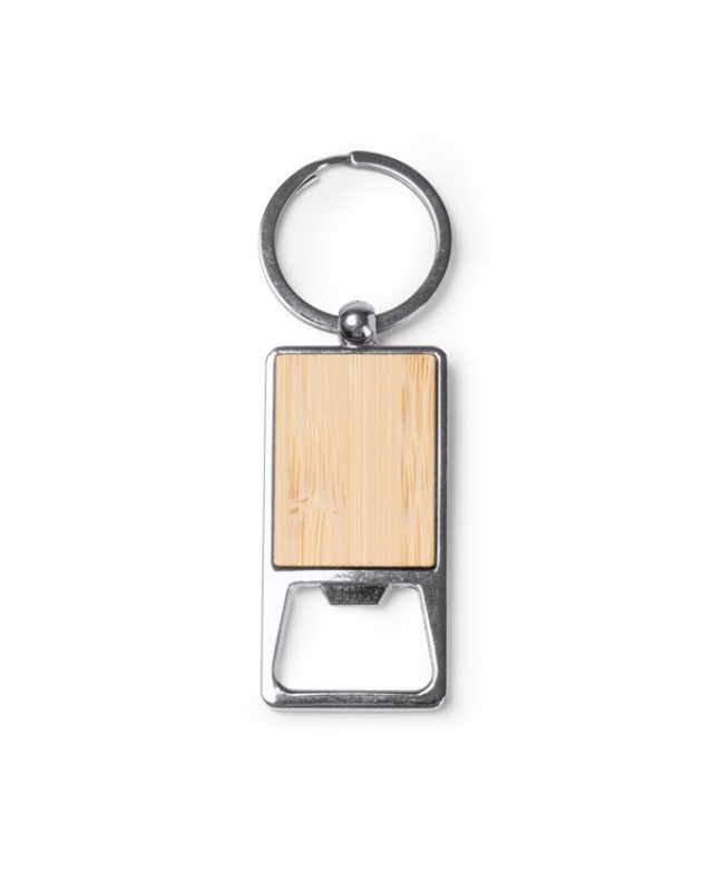 Portachiavi apribottiglie in bambù e metallo cromato. - Misure: [9,5cm/1,2cm/3,7cm] - Composizione: Bambú