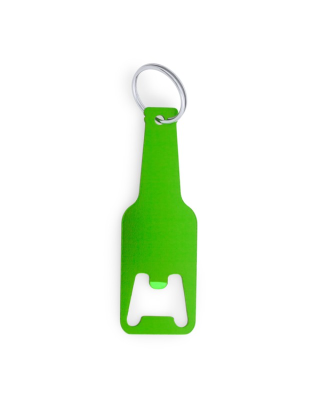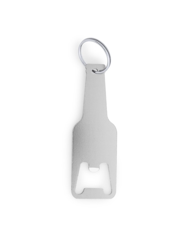 Portachiavi con apribottiglie in metallo a forma di bottiglia. - Misure: [3cm/8,9cm/0,2cm] - Composizione: Alluminio