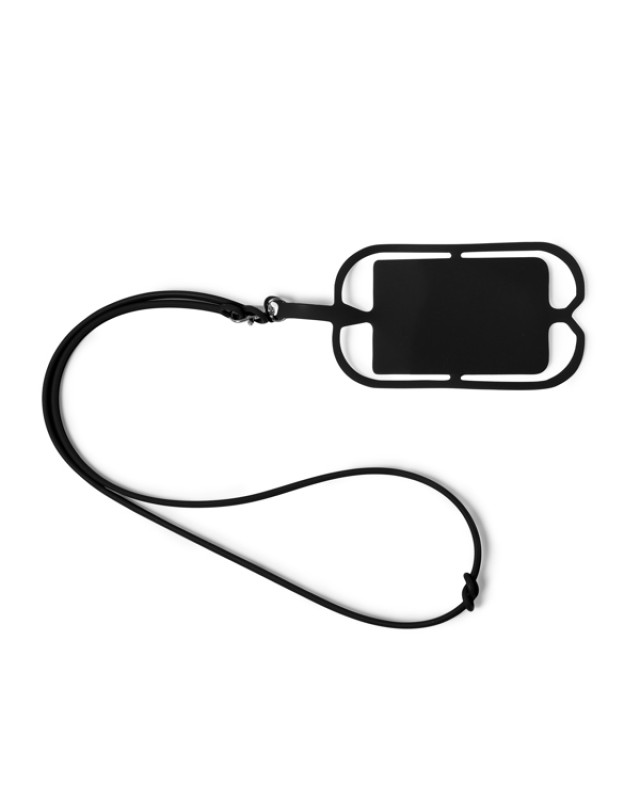 Cordino in silicone con supporto per cellulari o carte, sistema di regolazione e moschettone. - Misure: [58cm/7cm]