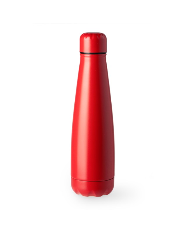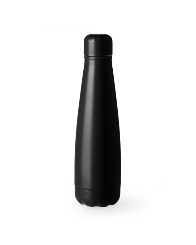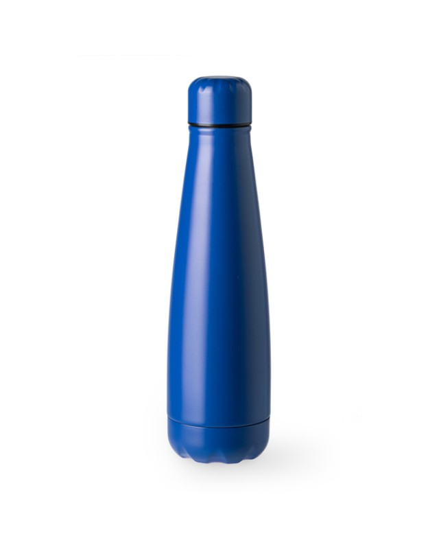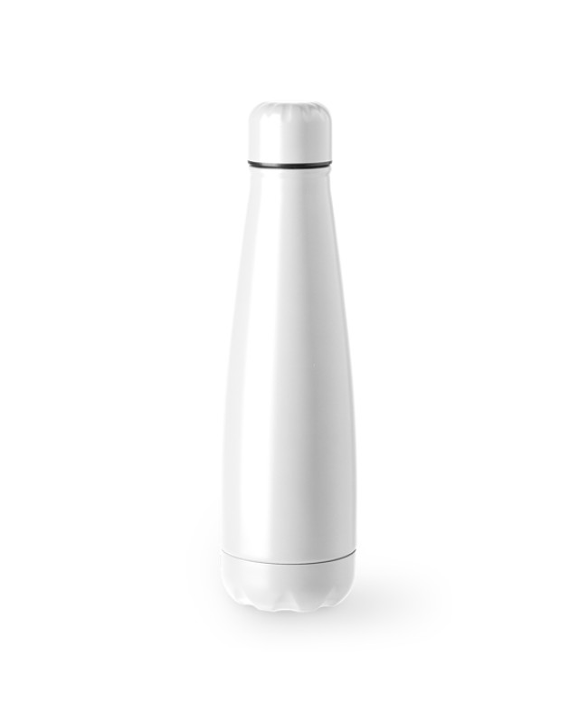 Bottiglia in acciaio inox 304 con tappo a vite. Capacità 630 ml. Realizzata in vari colori a tinta unita con finitura opaca, con cui mettere in risalto i vostri motivi. - Misure: [25,5cm/7,1Ø] - Composizione: Acciaio inossidabile 304. - Antigocciolamento.Confezione in scatola di design.