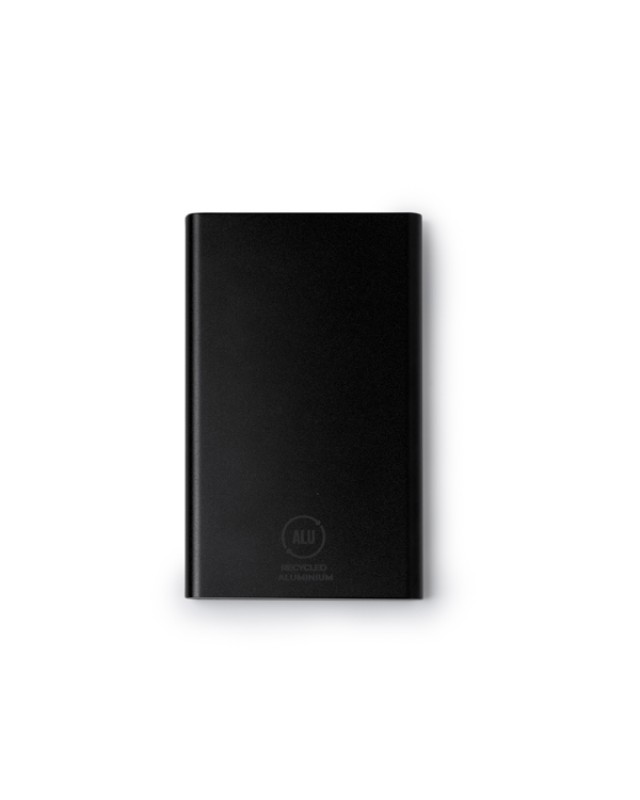 Power bank in alluminio riciclato. Capacità di 4.000 mAh. Indicatore LED. Uscita DC5V/2,1A. Cavo di tipo C incluso. Confezione in scatola di design ecologico. - Misure: [6,5cm/11cm/0,9cm] - Composizione: Aluminio reciclado - Capacidad: 4000mAh / 3.7V Entrada: DC5V/2.0A Salida: DC5V/2.0APresentación en caja diseño eco